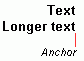Center positioned anchor – the text will grow from the center and out. Let a variable determine the position. The variable must return either Left, Right or Center (case sensitive). Keep the original alignment of the text when mirroring the object layout.