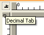Example 73 Center Tab, Right Tab and Decimal Tab. Click the tab symbol in the ruler intersection to browse through the different tab types and indents.